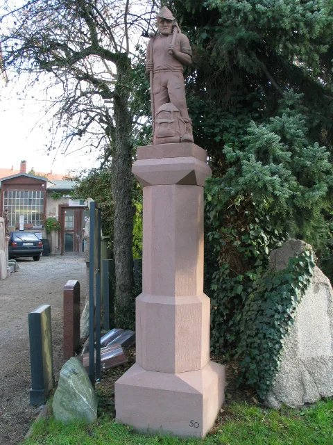 Holzfäller und Brunnenstock gearbeitet nach altem Steinmetz- und Bildhauerhandwerk.