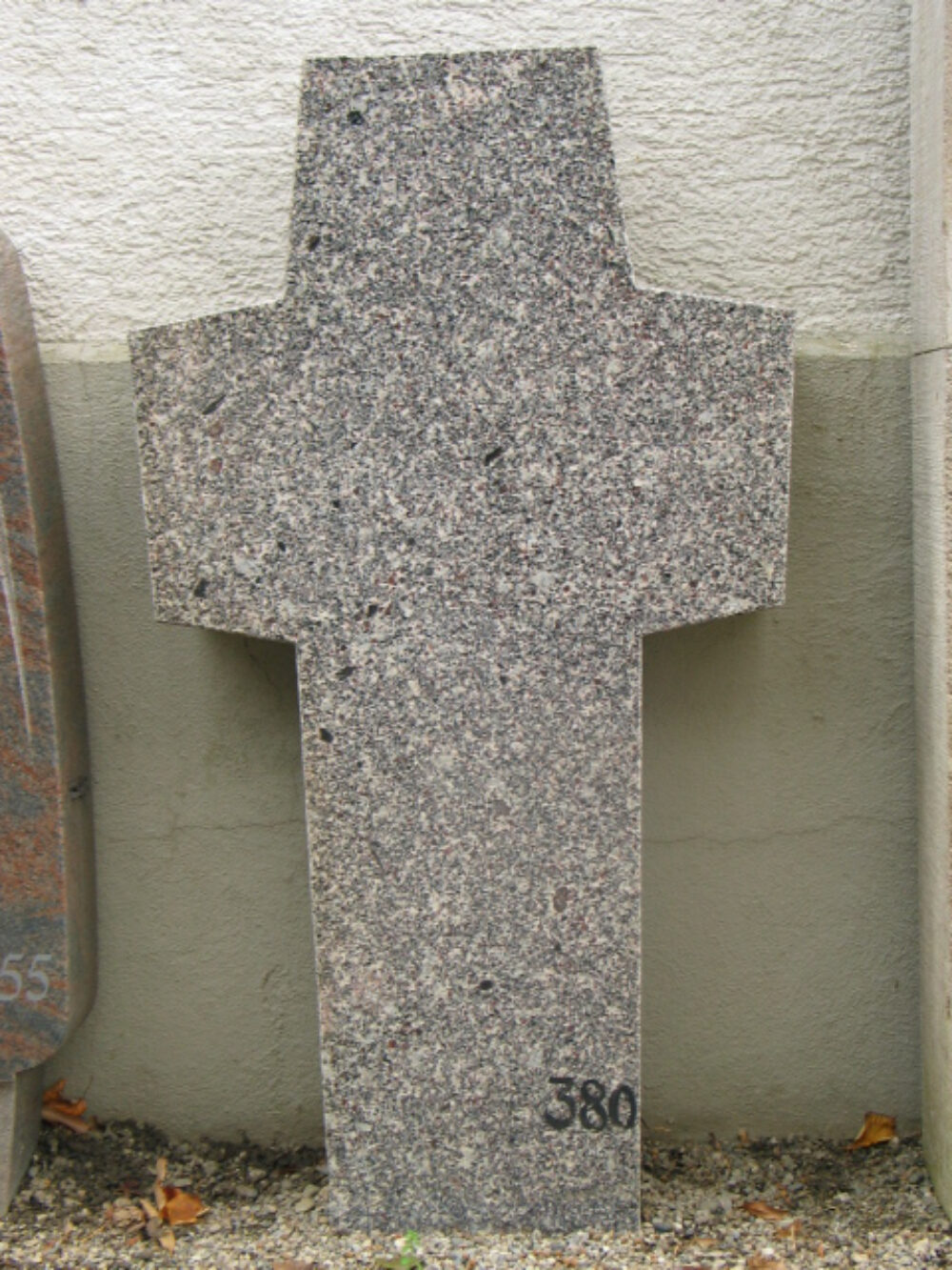 Kreuz aus Schwarzwälder Granit (Rohrhardsberg bei Schonach) Sichtseite poliert Seiten fein gestockt.