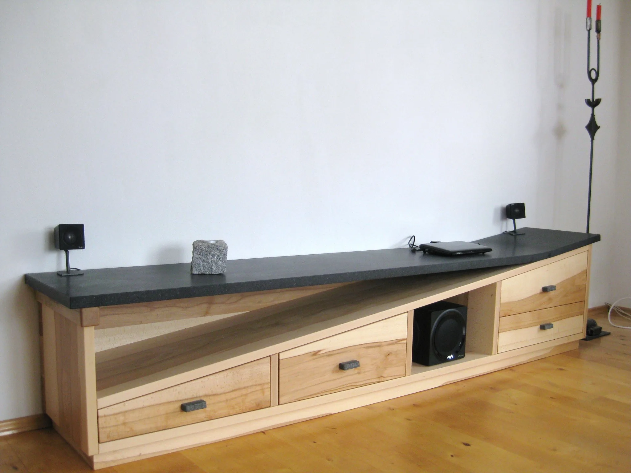 Platte aus schwarzem Basalt Unterteil aus Wild-Buche