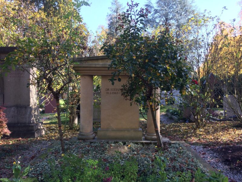 Die Steinmetzinnung Freiburg hat dafür ein Konzept entwickelt. In Zusammenarbeit mit dem Eigenbetrieb Friedhöfe EBF, wurde auf dem Hauptfriedhof Freiburg im Feld 24 die Idee einer pflegefreien Erinnerungsstätte umgesetzt. Die unterschiedlich gearbeiteten Steinstelen haben eine Maximalhöhe von 80 cm und einen Grundriss von max. 30 x 30 cm. Jede Stele entspricht einer Grabstätte und kann mit bis zu vier Urnen belegt werden. Diese kann familiär oder auch als freie Gemeinschaft genutzt werden. Die Urnen werden seitlich, den vier Himmelrichtungen entsprechend, im Rasen beigesetzt. Die gesamte Anlage wird vom Eigenbetrieb Friedhöfe gepflegt, es entstehen keine weiteren Kosten für die Dauer der Nutzung der Grabstätte.